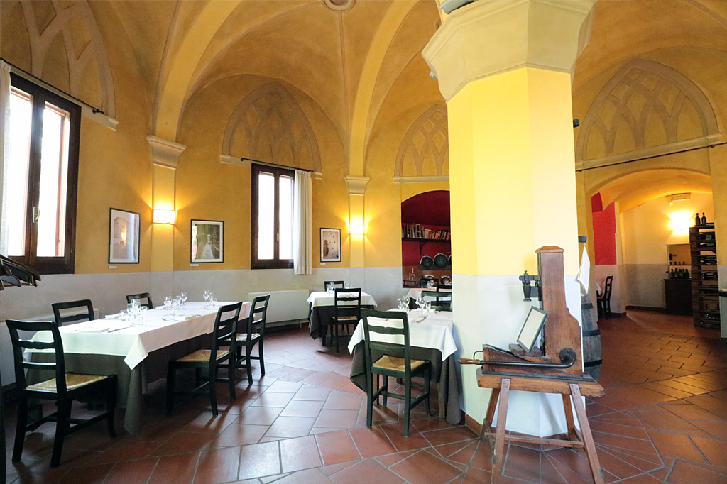 Nella possente colonna centrale è stata ricavata la canna fumaria che oggi svetta al centro della sala centrale, oggi denominata “Badessa”. Gli altri locali una volta adibiti alla salagione del formaggio e alla stagionatura, ora offrono gli altri 2 spazi dedicati a sala da ristorazione.