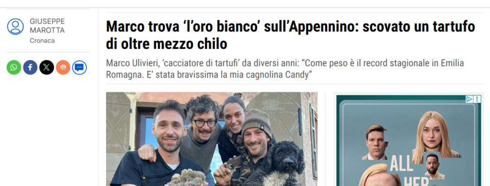 Avvisiamo i nostri gentili clienti che abbiamo a disposizione il Tartufo Bianco Reggiano Pregiato da RECORD! appena cavato dal nostro Appennino Tagliatelle, Tartare…