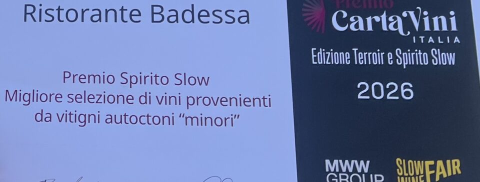 il 23 febbraio 2026 presso SLOW WINE FAIR a Bologna ci hanno premiato, consegnandoci la targa di Riconoscimento come MIGLIORE CARTA DEI VINI con Focus sui vitigni autoctoni e minori. Grazie a tutti Alberto e Luca