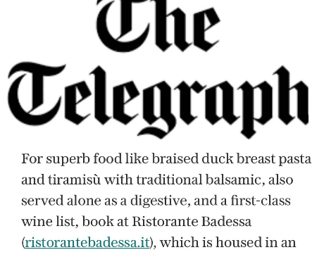 ecco l’articolo ufficiale completo che parla della provincia di reggio emilia e delle sue perle tra le quali ci siamo anche noi! https://www.telegraph.co.uk/travel/destinations/europe/italy/reggio-emilia-italy-holidays-2022-destinations-castles-food/